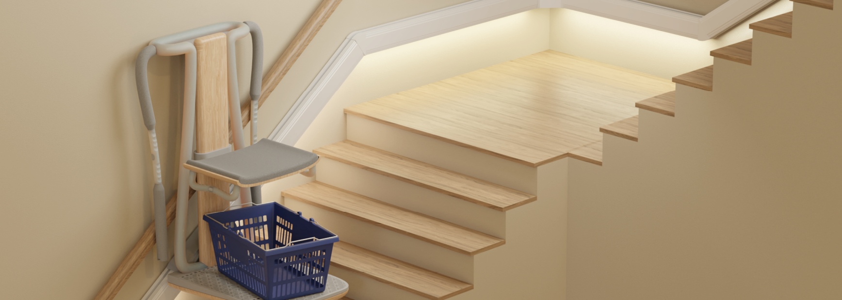 A more dignified stair chair that adapts to both the user’s ever changing needs and their home layout.