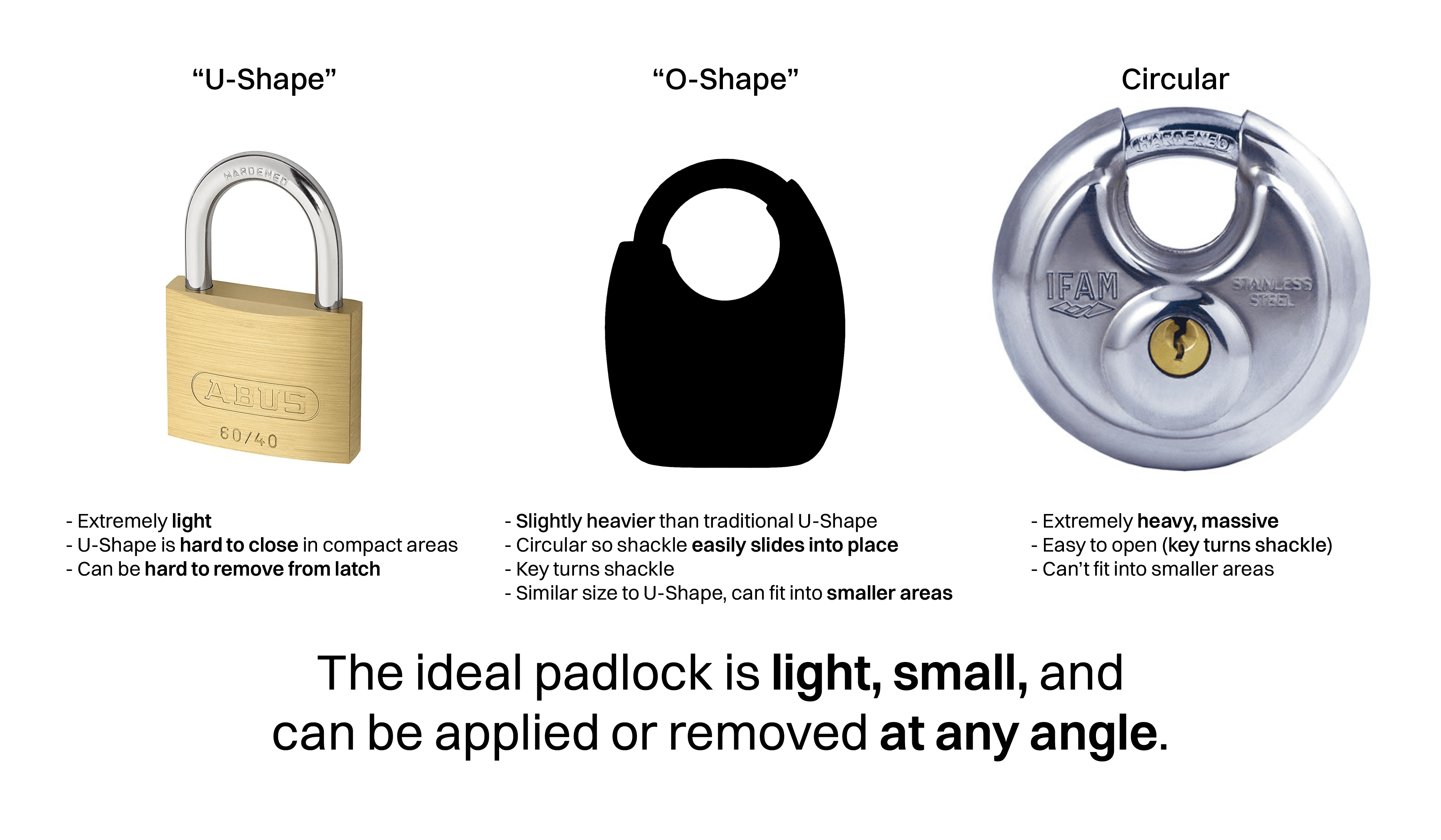 Because of the circular shape of the shackle, the SpeedShackle family cannot be produced using the same methods as existing padlock designs.