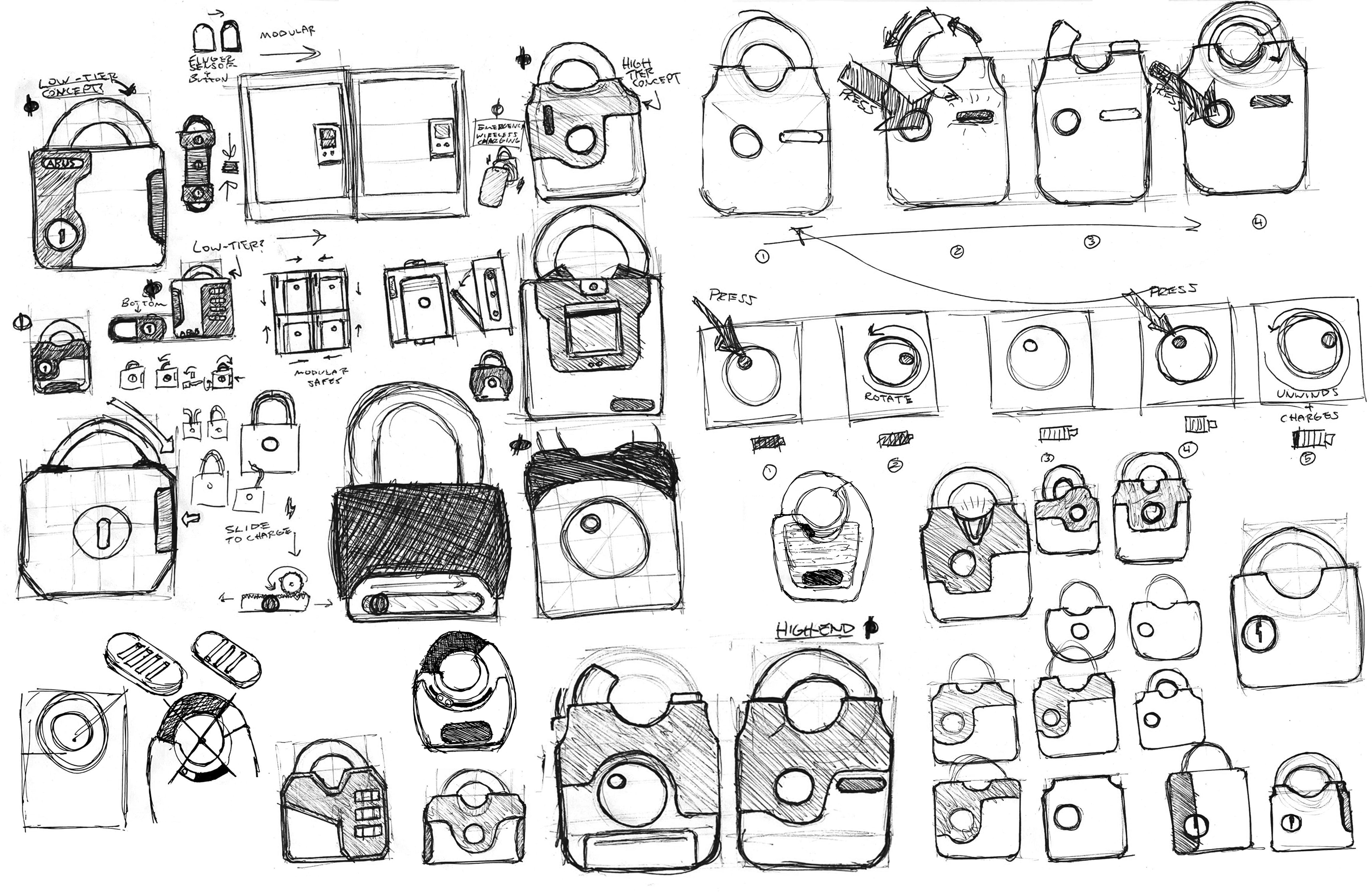A duo of mechanical and smart padlock concepts designed for enhanced security and quick access.